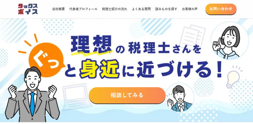 タックスボイスは、企業や個人事業主が自分に最適な税理士を見つけるために特化した、税理士紹介サービスです。